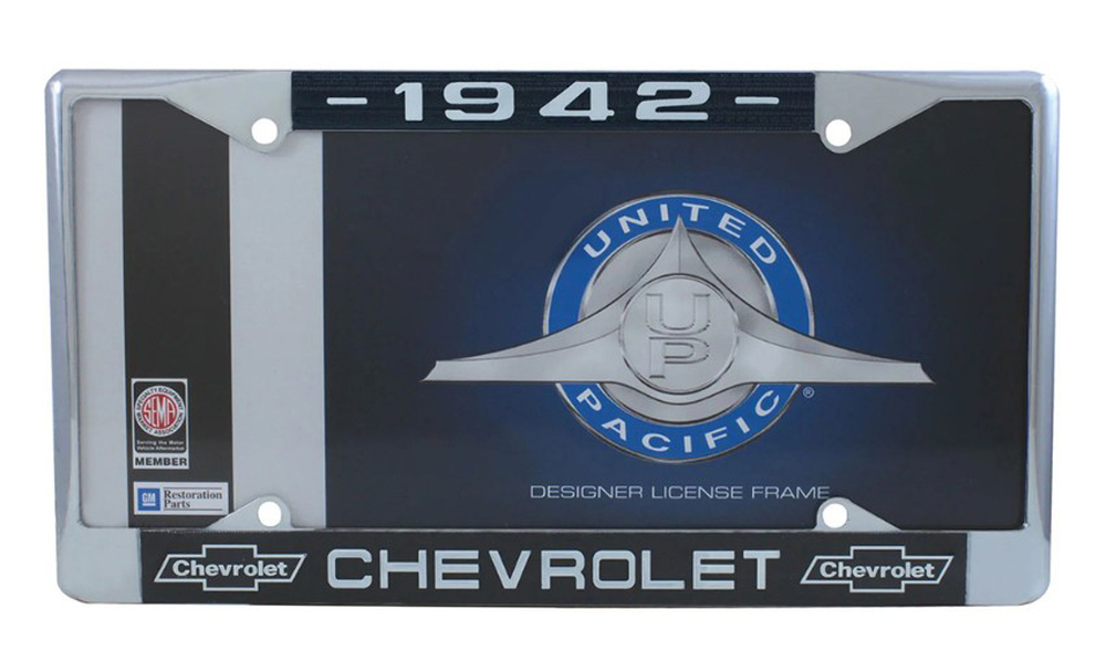 These beautiful chrome license plate frames show off the year of your Chevrolet. Frames have "Chevrolet" and Chevy Bowtie in white letters along with the year of your car or truck, also in white letters. The frames are for standard size current license plates. Dimensions: 12-1/2" x 6-1/2". Not all years available. Sold each.