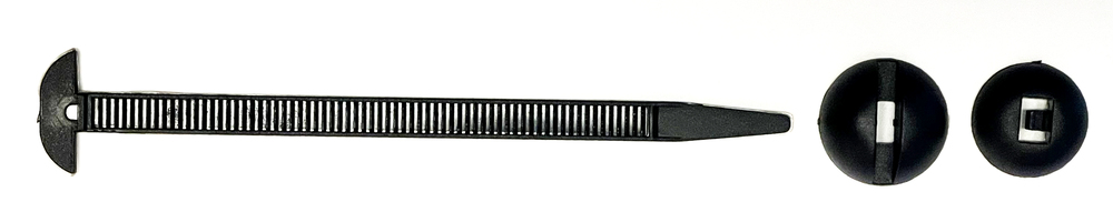 This is a Set of 10 Firewall Insulator Nylon Tie Retainers. Each retainer consists of three pieces: 4" long nylon lock strip, a slotted button head to mate to the "T" head end, and a locking button for the pointed end. This is a great new way to lock a firewall insulator tight to the firewall. Sold in a set of 10 for mounting any firewall pad. Easy to use and quick to install!