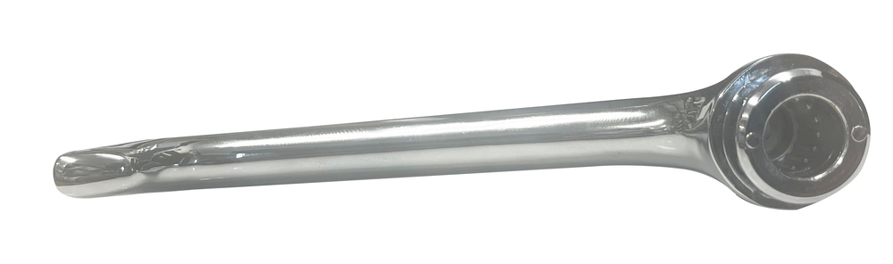 This chrome interior door handle is for 1937-1938 Chevrolet passenger cars.