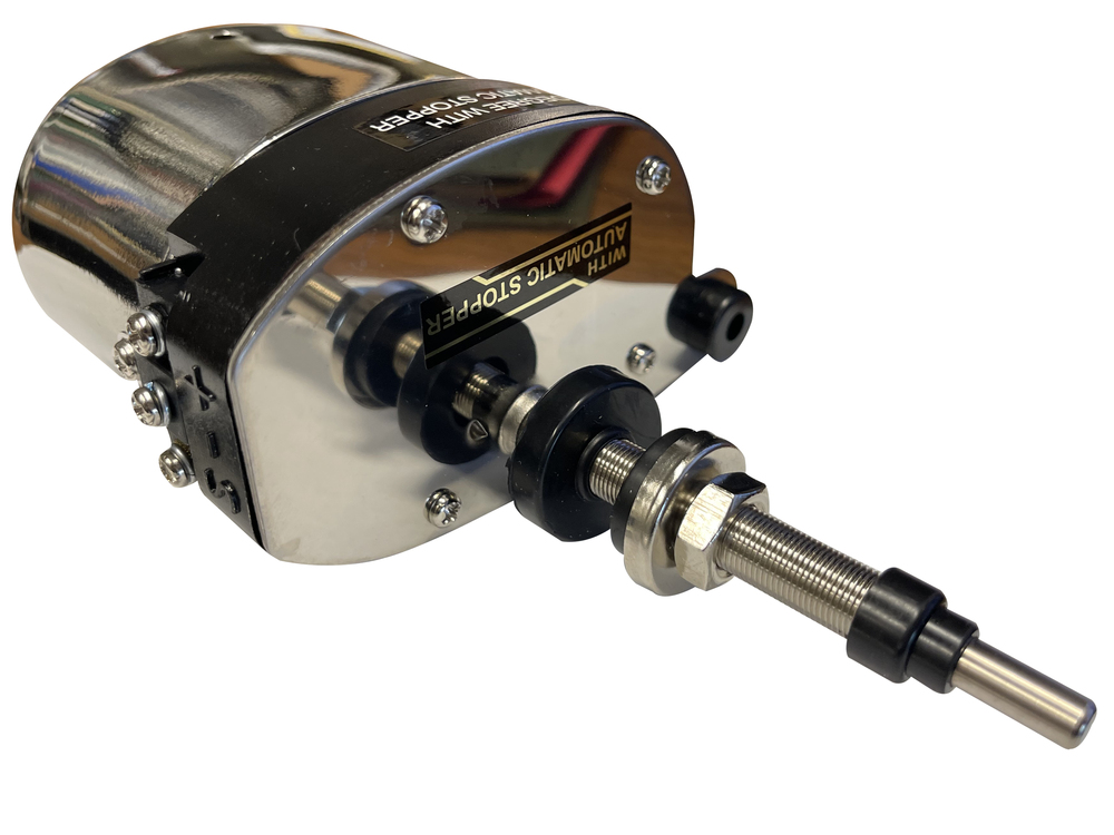 This is a Universal 12-Volt Wiper Motor with Stainless Housing. Motor comes with wiper arm and blade. The shaft is 2-7/16" long and includes instructions for shortening the shaft. This wiper motor has an automatic self park and a 110 degree sweep. Motor overall depth is 3-1/4". For replacement wiper arms see VT-60, VT-61, VT-64 or VT-65. Replacement wiper blades see VT-62, VT-63, VT-66, AF-341SR or VT-67. NOTE: WILL NOT WORK ON EARLY GM VEHICLES WITH CRANK-UP WINDSHIELDS.