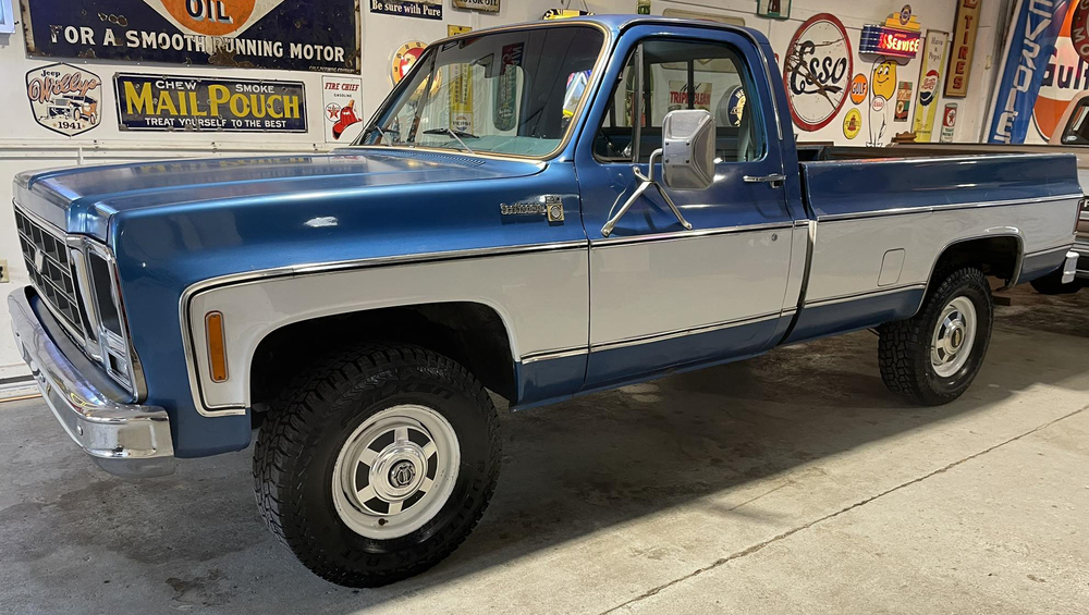 1973 was the first year of the new body style for the GM truck line. The new body style featured sculptured sides, squared-off wheel openings, 21% more glass area (with enclosed antenna), and a roomier cab with flow thru ventilation. The frame rail thickness was increased, the gas tank was moved out of the cab to the right-side frame rail, and a new energy absorbing steering shaft was added. Suspension wise, the wheelbase increased (2.5 inches for swb and 4.5 inches for lwb), front spring rates were reduced, a front stabilizer bar was added to improve ride and handling, front disc brakes were now standard, and the rear shock absorbers were staggered to reduce axle hop. New to the lineup was a factory crew cab (3+3) dooley, and a four door Suburban (67-72s were three door). Engine wise, 1973 was the last year for the 307 V8 and the 454 now replaced the 402.